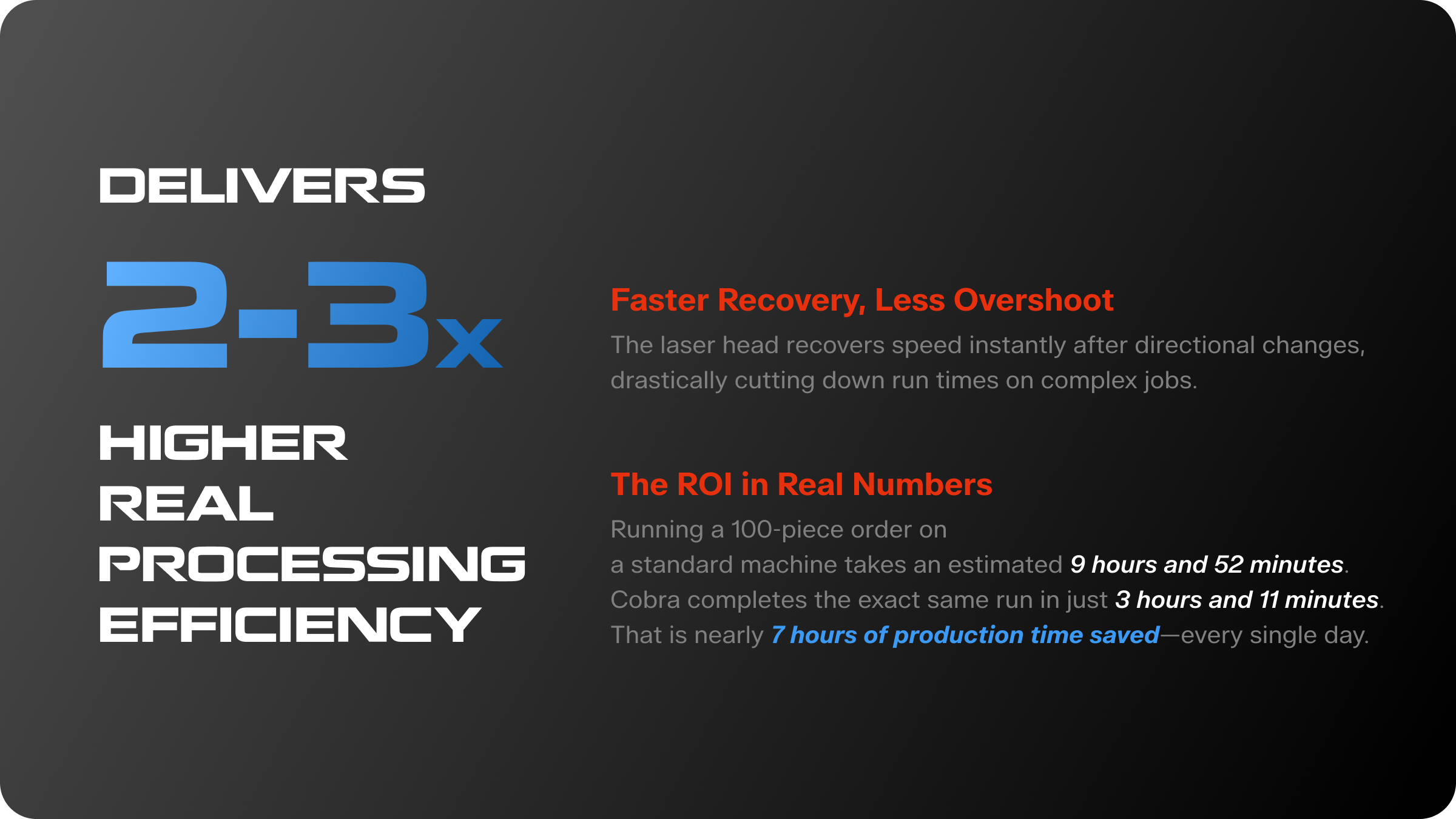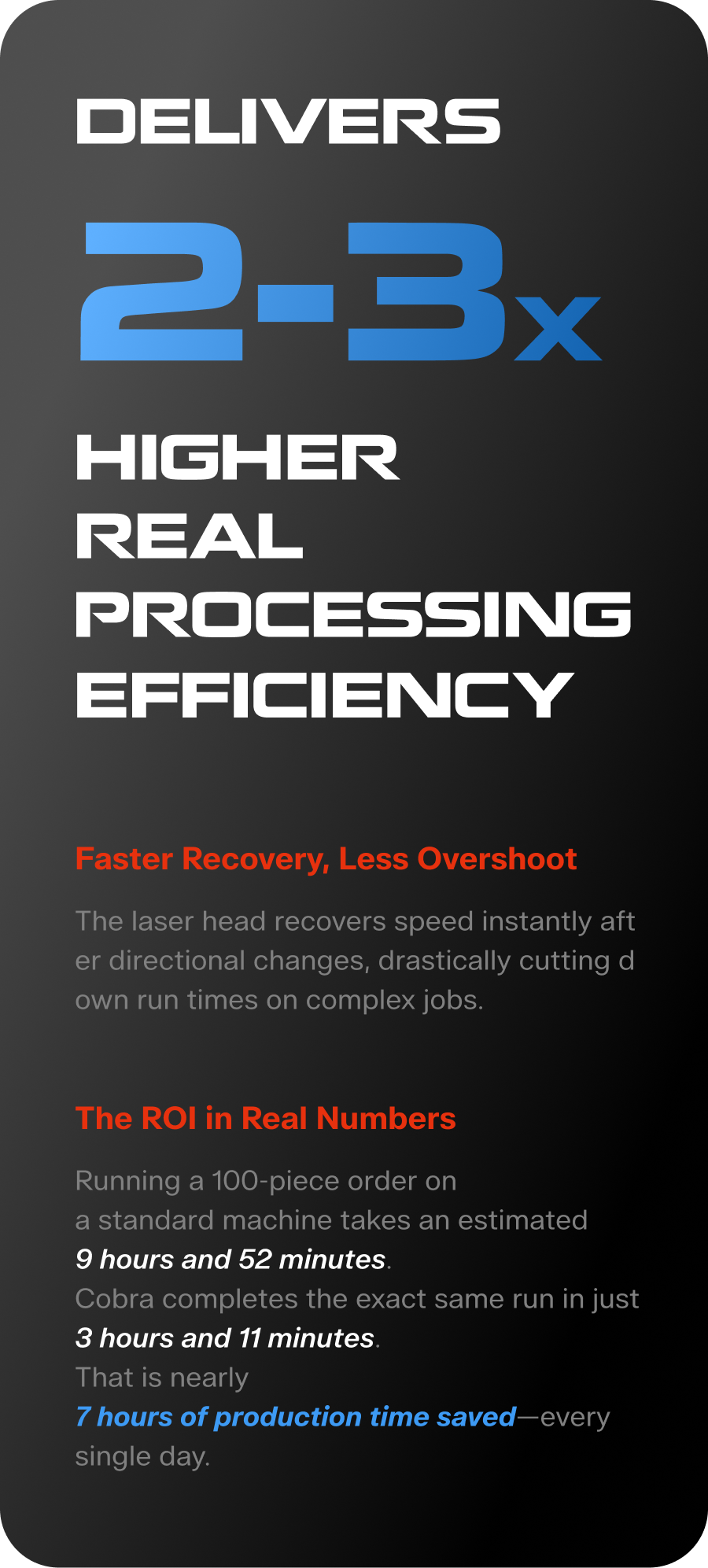 ✔ Real Efficiency, Not Just Specs – Advanced DSP control delivers 2–3× faster real processing, especially on complex designs and detailed engraving.