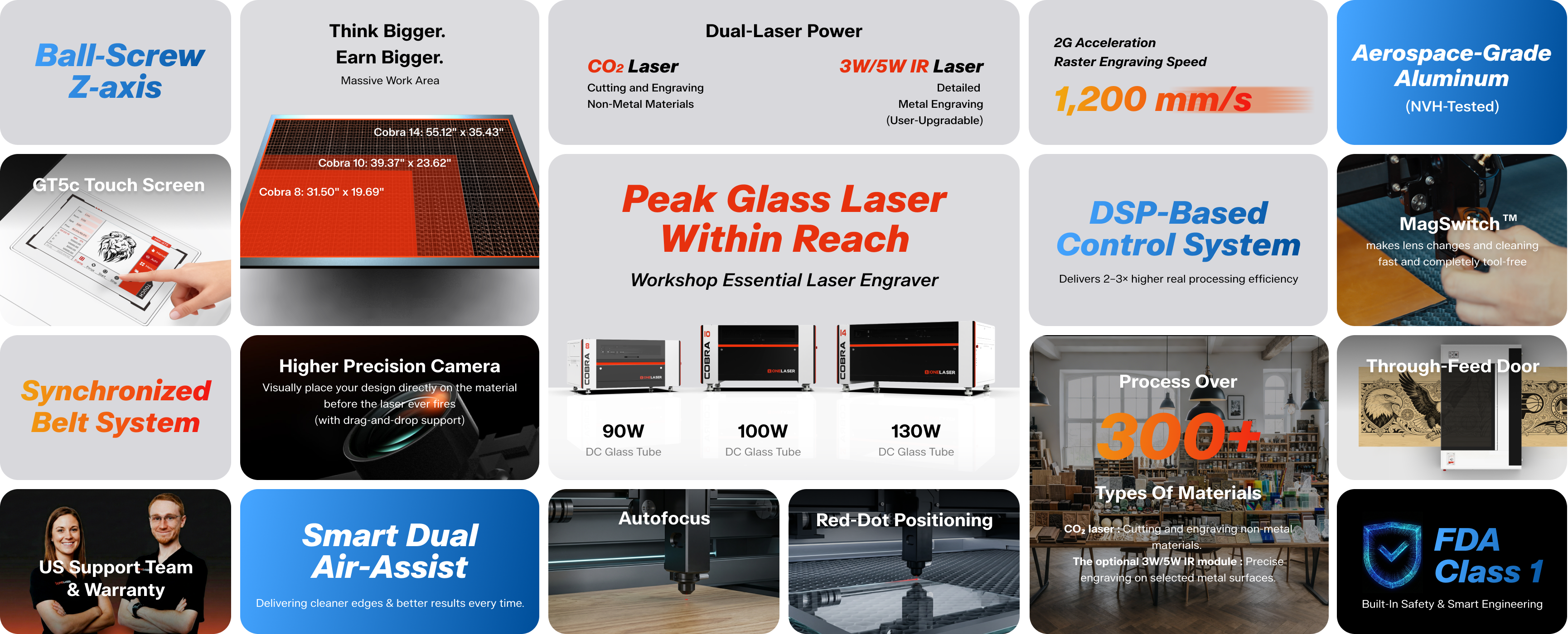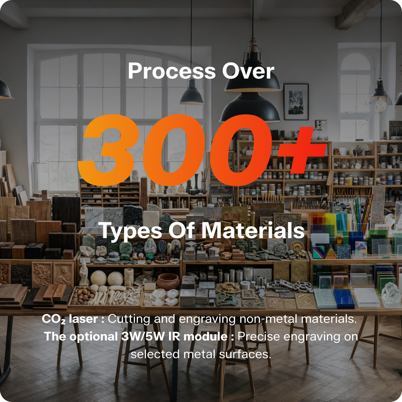 ✔ Expand Beyond CO₂ Limits – Optional 3W/5W IR module unlocks metal engraving and over 300 material possibilities.